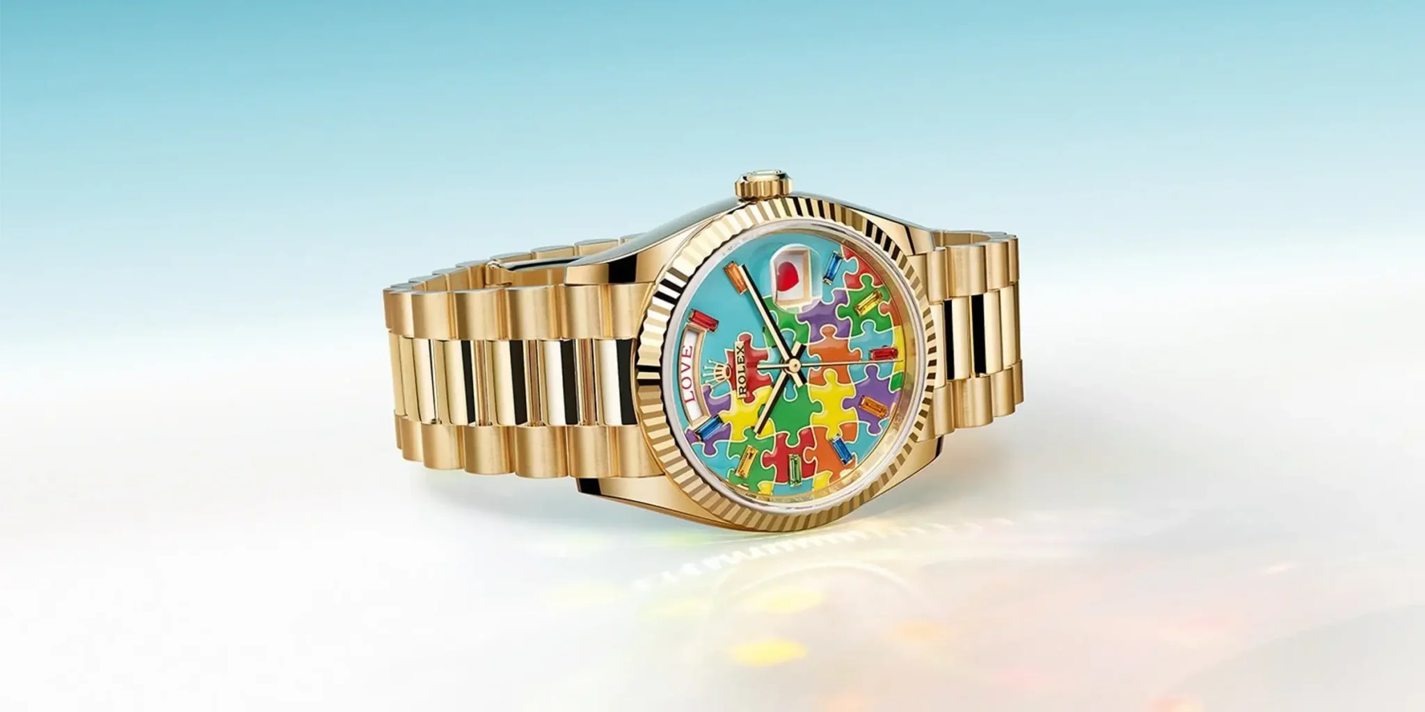 The Rolex Day-Date “Emoji” or “Autism Awareness Puzzle” gets its name from the whimsical emoji icons replacing traditional day of the month indicator, and because the puzzle pice, or jigsaw pieces in different colours, are both symbols for Autism. Crafted in precious metals like yellow, white, or Everose gold, it features a unique puzzle-piece style dial adorned with emojis, gemstones, and a special keyword for each day of the week. Due to their bold design and exclusivity, “Emoji” Day-Dates are highly sought-after by collectors with a playful spirit and command significant prices on the secondary market at around $290,000 at the moment of writing the article.